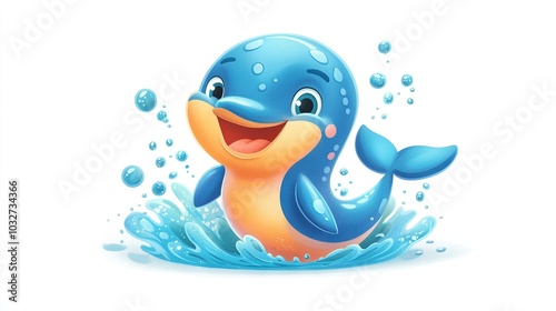 © Anna, Fototapeta premium A blue dolphin smiling, surrounded by bubbles in the water