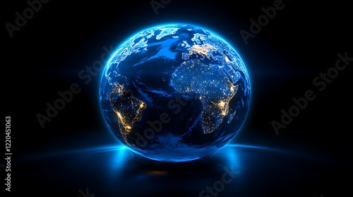 Fototapeta premium A blue Earth with lights on it centered, Realistic 3d planet earth