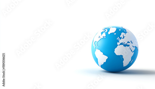 Fototapeta premium A blue globe illustration symbolizing the Earth, highlighting continents with a clean, modern design on a white background.