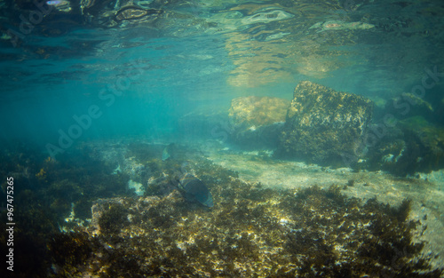 © AlexandraDaryl, Fototapeta premium A blue grouper swimming at the ocean floor.