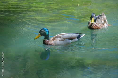 © Panpiki, Fototapeta premium A blue headed duck in the water