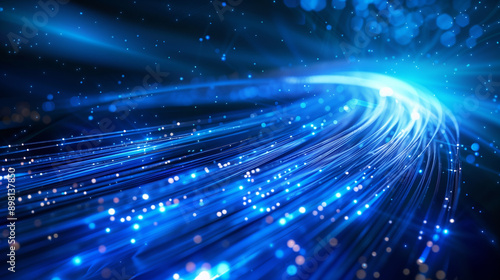Naklejka premium A blue line of light with many small blue dots