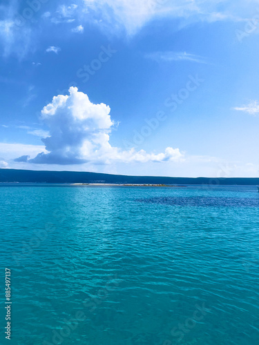 © Zhanna, Obraz premium a blue ocean with a white cloud in the sky
