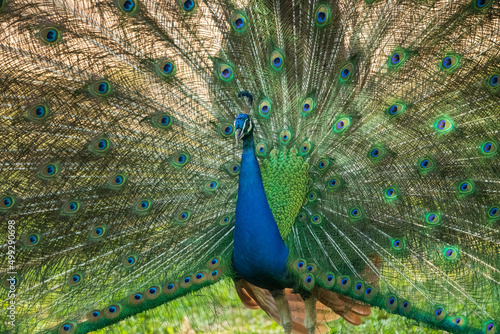 © imphilip, Obraz premium a blue peacock expanding wings