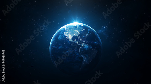 Obraz premium A blue planet Earth in space with bright light shining on its surface. The...