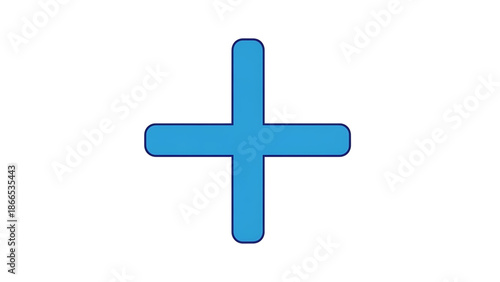 © Guilherme, Obraz premium A blue plus sign icon on a white background, symbolizing addition and growth