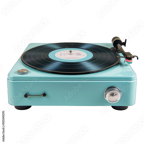 © Danish, Fototapeta premium a blue record player with a black record isolated on white background png