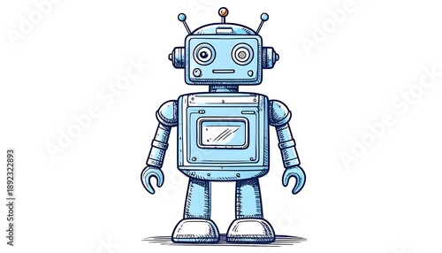 © Erika, Fototapeta premium A blue robot with a square body and rounded edges