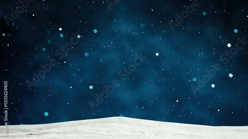 © Igor, Naklejka premium A blue sky covers a snow-covered hill dotted with white snowflakes