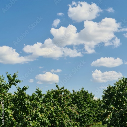 © parpalac, Obraz premium A blue sky with clouds above trees
