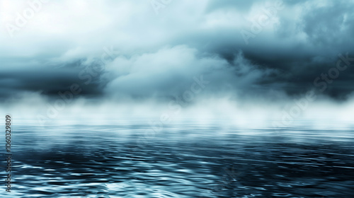 © W, Obraz premium A blue sky with clouds and a horizon. The horizon is in the background