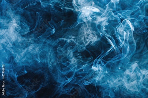 © At My Hat, Obraz premium A blue smokey background with a white and blue swirl. The smoke is thick and dense, creating a mood of mystery and intrigue