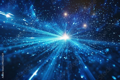 Obraz premium A blue starry sky with a bright light shining through it