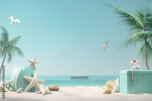 Obraz premium A blue suitcase with a red