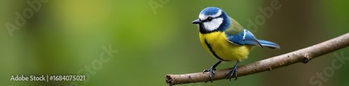 Obraz premium A blue tit perches on a twig in a tree branch, its feathers a vibrant shade...