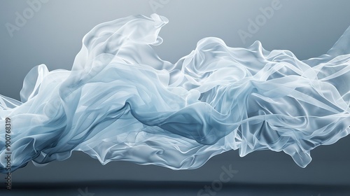 © Sonya, Fototapeta premium A blue-white smoke swirls on black-white backgrounds, with a light blue backdrop