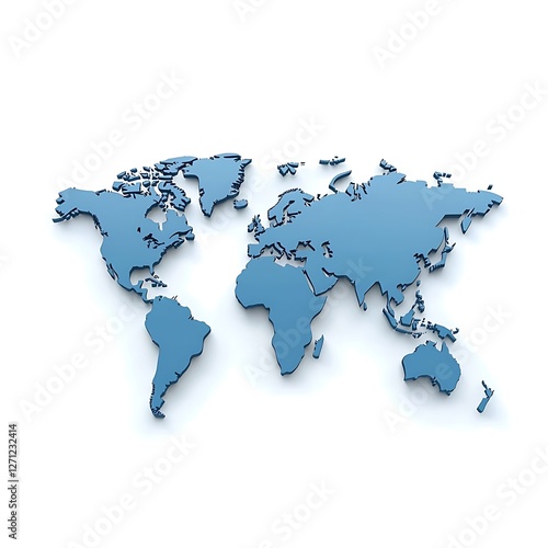 Fototapeta premium A blue world map with a 3D perspective, isolated on a white background.