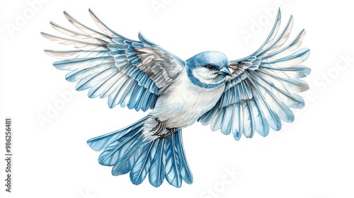 Fototapeta premium A bluebird in mid-flight, showcasing its vibrant feathers against a white...