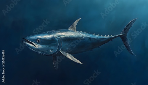 Fototapeta premium A Bluefin Tuna Swims in Deep Ocean Waters