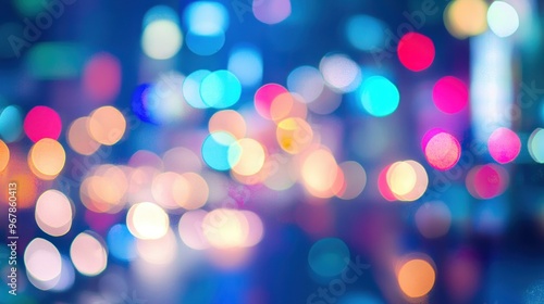 Fototapeta premium A blurred night scene with colorful bokeh lights creating a vibrant atmosphere.