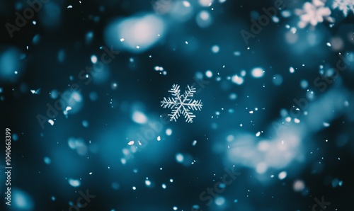 © Galina, Obraz premium A blurry image of snowflakes falling on a dark blue background