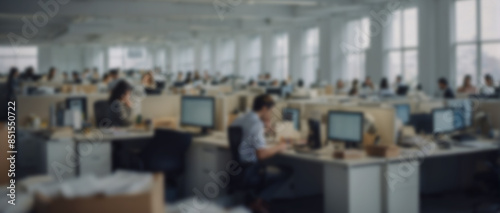 Obraz premium A blurry office background, employees are working