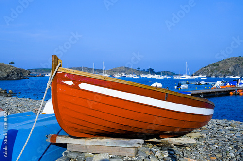 Naklejka premium A boat in Portlligat, Cadaques, Spain