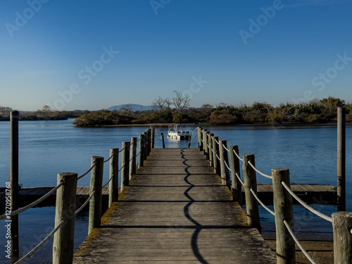 Fototapeta premium A boat in the pier at Escaroupim, Portugal
