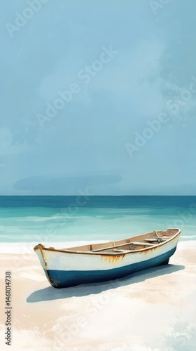 © krismicrostoker, Naklejka premium A boat is sitting on the beach
