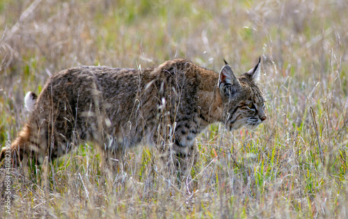 © Gary Peplow, Obraz premium A Bobcat in a Grassy Field Hunting for Food