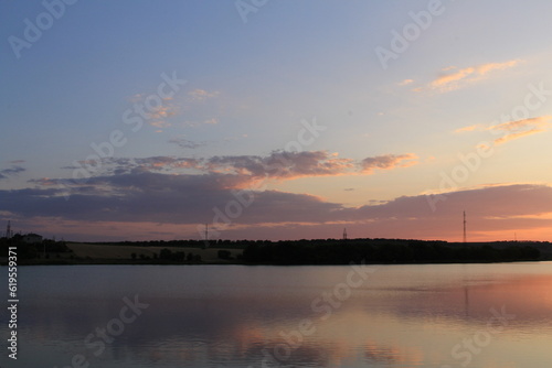 © parpalac, Fototapeta premium A body of water with a sunset in the background