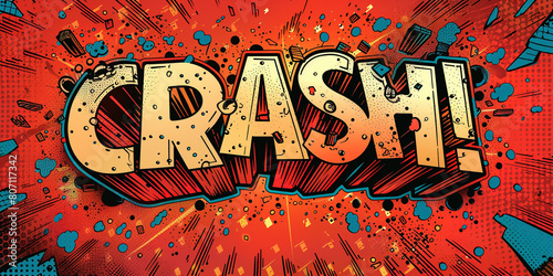 © Susana, Obraz premium a bold and vibrant text effect with the word "CRASH!" in large, 3D white letters. The retro comic book