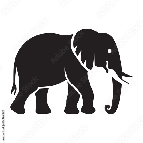 © Parvez, Fototapeta premium A bold, black silhouette of an elephant against a white background.