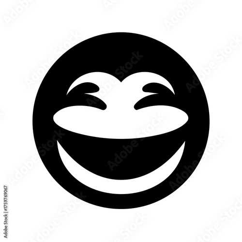 © Sizan, Fototapeta premium A bold black smiling emoji on a white background creates happiness