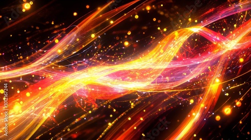 © Ceyhun, Naklejka premium A bold composition of glowing data flow and explosion, lights, energetic backround, colorful