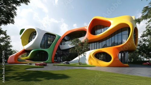 Obraz premium A bold experimental building with asymmetrical forms and vibrant colors