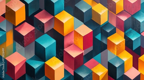 © Youttakone, Obraz premium A bold geometric design featuring 3D cubes arranged in a repetitive pattern