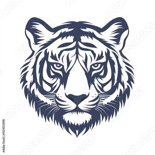 © Aisyaqilumar, Obraz premium A bold, graphic illustration of a tiger's head, featuring striking orange and black stripes with white accents, against a plain white background.