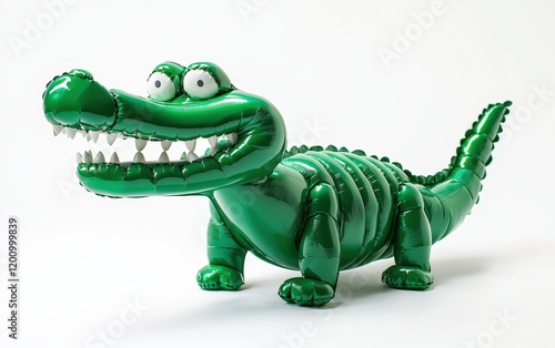 © Антон Федченко, Fototapeta premium A bold green balloon crocodile sculpture, with a toothy grin, isolated on white