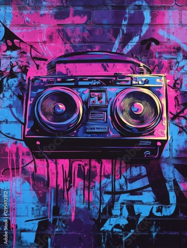 Fototapeta premium A bold hip-hop event background featuring dynamic graffiti textures, urban street art, and vibrant colors. Perfect for music promotions, rap events, DJ parties, concert flyers, dance battles