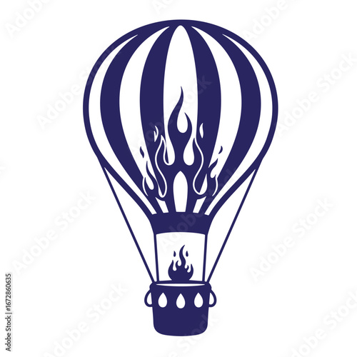 Obraz premium A bold navy blue and white hot air balloon with stylized flames for design