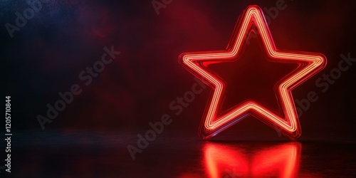 © Stockberry, Fototapeta premium A bold neon star with rounded edges, glowing in fiery red, casting reflections on a glossy dark background