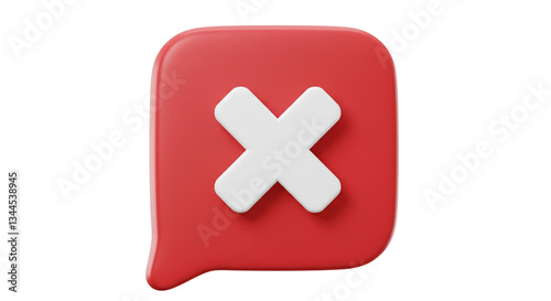 Obraz premium A bold red speech bubble dramatically displays a stark white 'X', symbolizing a decisive rejection or cancellation, rendered in smooth, three-dimensional style.