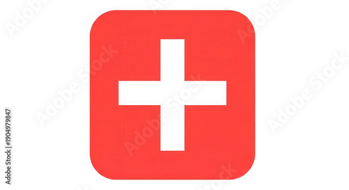Obraz premium A bold red square with a white plus symbol in the center, isolated on...