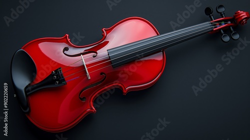 Fototapeta premium A bold red violin against a sleek black backdrop its gloss