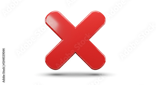 Fototapeta premium A bold red X symbolizes rejection, a definitive end, or a crucial decision against a clean white background with a subtle drop shadow.