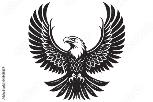 © SADHON, Obraz premium A bold symmetrical silhouette of a majestic eagle.