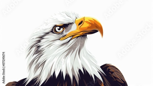 Obraz premium A bold vector graphic representation of a bald eagle with its sharp gaze, capturing the essence of this powerful bird against a simplistic white backdrop.
