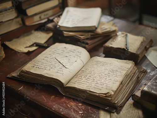 Fototapeta premium A book with a pen on it is open on a table