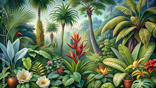 Fototapeta premium A botanical illustration of rare and exotic plants from a tropical rainforest